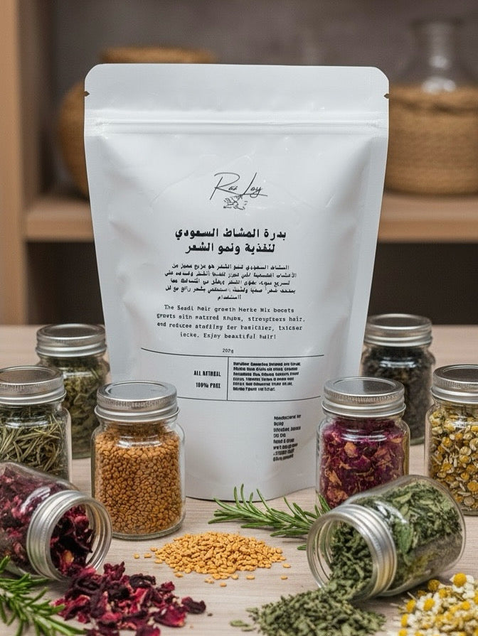 مشاط رازلي السعودي هو مزيج فريد من أعشاب عطرية وطبية مثل ورق السدر، بتلات الورد، القرنفل، الخزامى، والأملا، بالإضافة إلى مجموعة أخرى من الأعشاب الطبيعية. يتميز هذا المشاط بتغذيته العميقة للشعر، مما يعزز من نموه وكثافته، ويقوي بصيلاته ليمنع التساقط. كما يساهم في تنعيم الشعر، وزيادة لمعانه، مما يمنحه رائحة زكية وعطرة تدوم طويلاً، لتجعل تجربة العناية بالشعر أكثر فخامة وفاعلية.